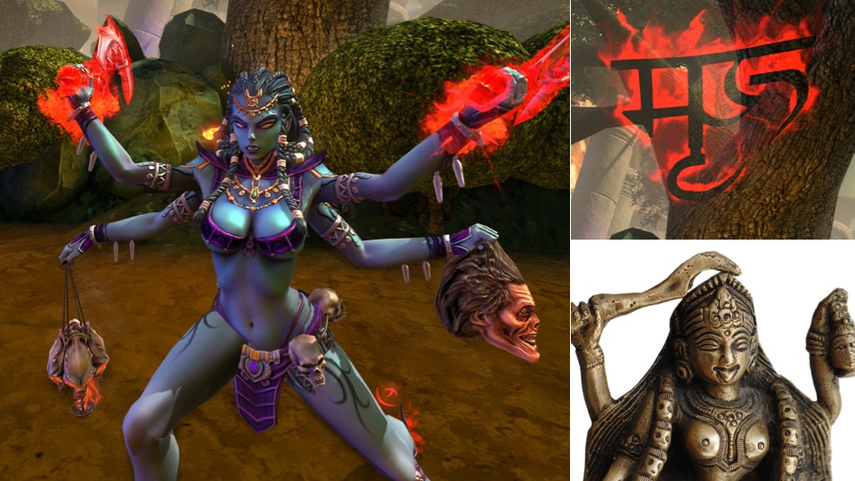 A mighty demon from hindu stories. Raktabija's name can be translated to "he for whom each drop of blood is a seed", which refers to his special ability. Each drop of his blood that hits the ground, immediately turns into a clone of him, causing anyone who fought him to be overwhelmed by a whole army of Raktabija clones.
