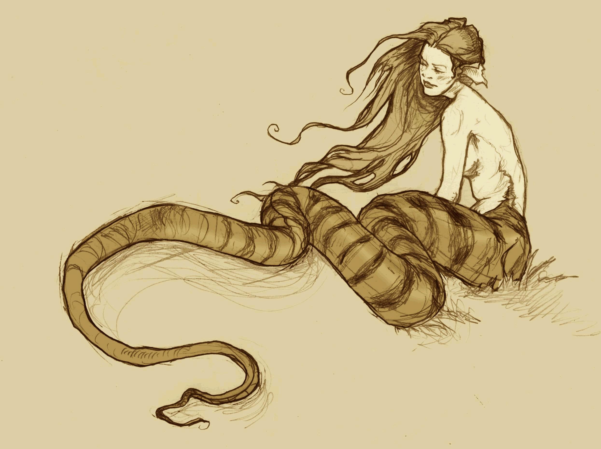This made Lamia go mad with sorrow, and she started to kidnap and kill children. As punishment for this, the gods turned her into the snake-woman hybrid we now know as a lamia. This didn't really made things better though, as she now didn't just kill children, she ate them. And she started to lure men into the woods where she would ambush them and suck their blood. Thanks gods.