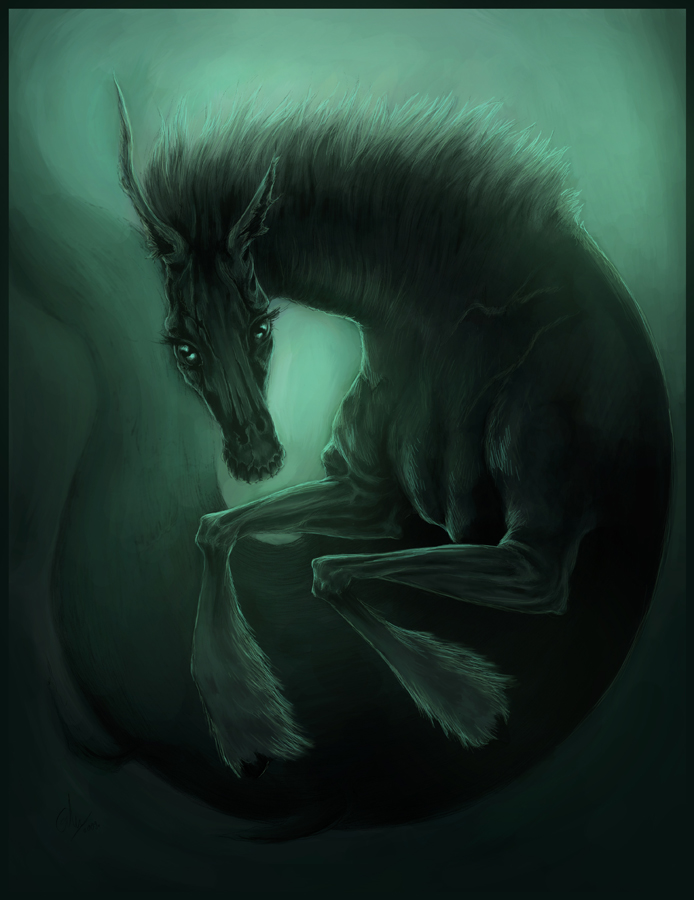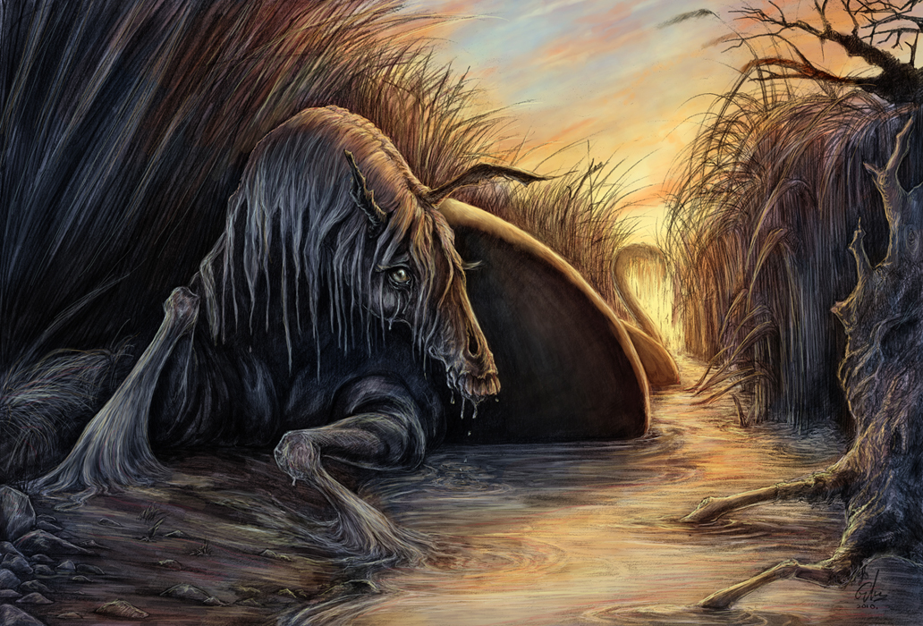 The kelpie is a shapeshifting water spirit from Scotland, said to inhabbit various lochs and pools. While it could look human, it was primarly said to have the form of a horse, in this form luring people to ride it, only to get stuck there. It then rode into the loch and drowned them, and then proceded to eat them. "Kelpie" is also the name of some dog breeds.