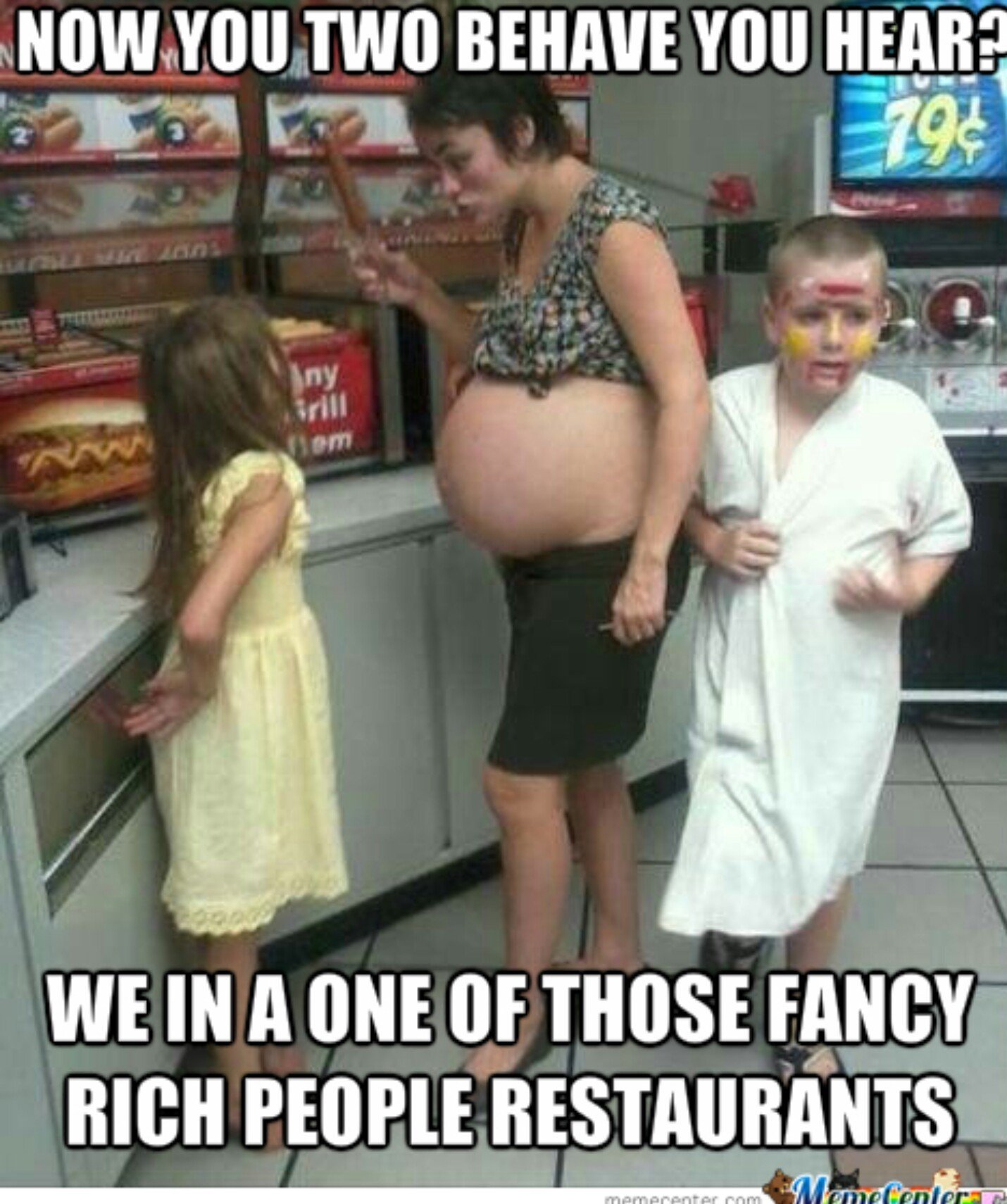 "Hurr white trash." Or it's just kids being kids and a mother trying to keep some semblance of order. And failing, if that's mustard and ketchup on his face, and not facepaint. They've got stands for that too, on a lot of boardwalks. Facepaints, henna tattoos, burgers, little carnival game stands.