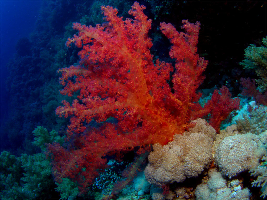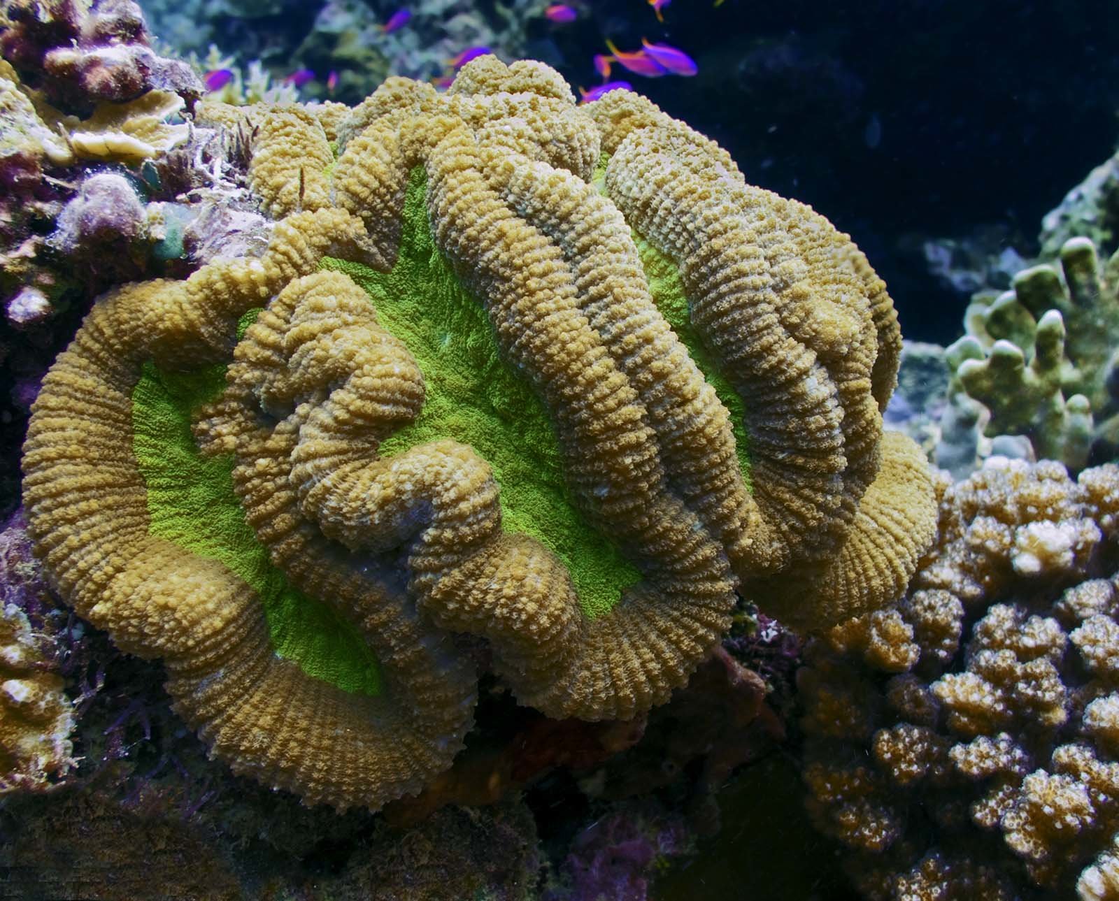 Although some corals can catch small fish and plankton, using stinging cells on their tentacles, most corals obtain the majority of their energy and nutrients from photosynthetic unicellular dinoflagellates in the genus Symbiodinium that live within their tissues. These are commonly known as zooxanthellae and the corals that contain them are zooxanthellate corals. Such corals require sunlight and grow in clear, shallow water, typically at depths shallower than 60 metres (200 ft). Corals are major contributors to the physical structure of the coral reefs that develop in tropical and subtropical waters, such as the enormous Great Barrier Reef off the coast of Queensland, Australia.