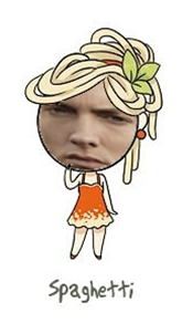 >you cheer her up by producing pocket pasta on a daily basis to act as her wig
