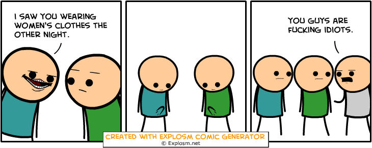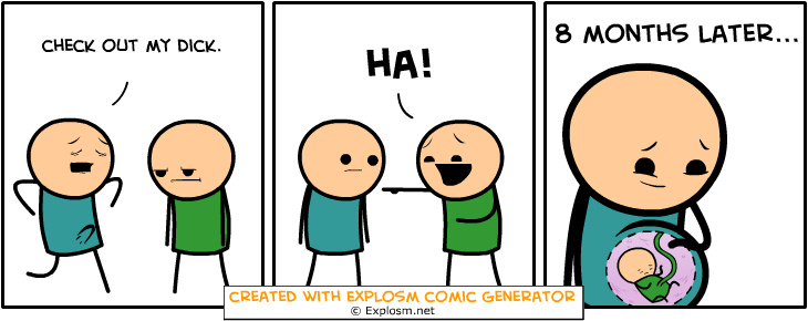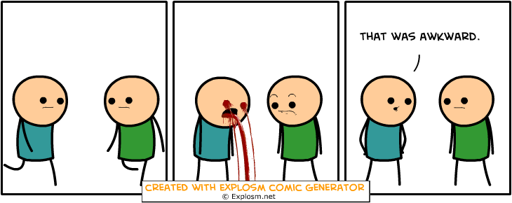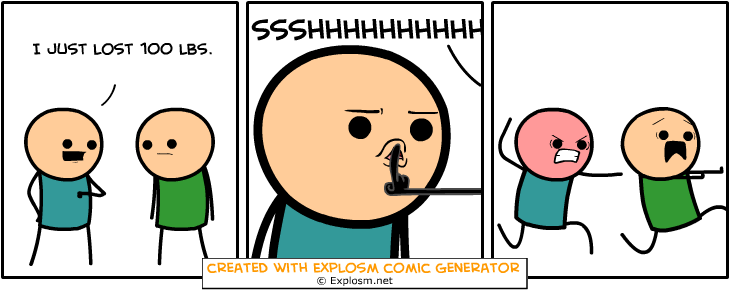 Cyanide & Happiness Comic Generator Flag demigara (See more...) prev next random - Fav Favorite Comment ✖ PrevTop NextComment prev next Tags: Cyanide and Happ | CnH t LOST 100 LBS. WITH GENERATOR ... +16 Views: 1577 Favorited: 0 Submitted: 01/05/2016 Share On Facebook -Favorite +Favorite Unsub from demigara Subscribe to demigara