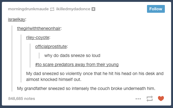 "why do dads sneeze so loud?"