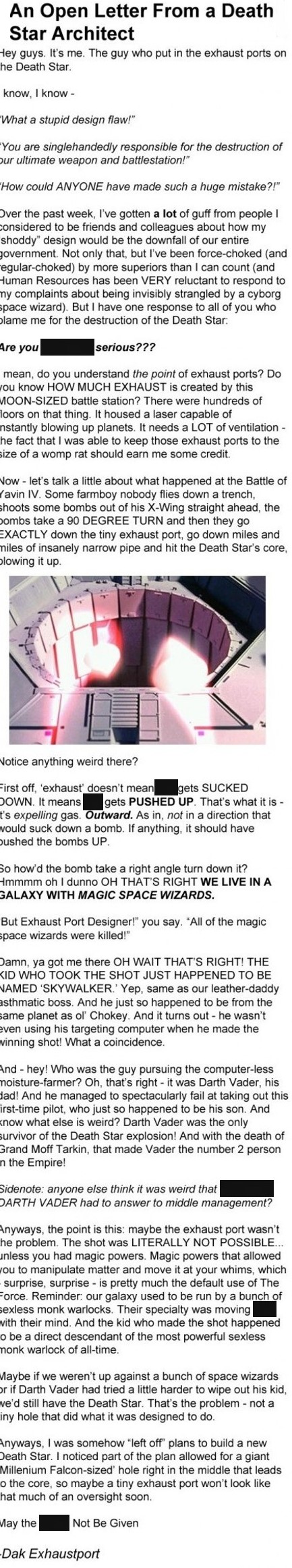 Damn magic space wizards Flag daniboyi (See more...) next random - Fav Favorite Comment ✖ Top NextComment next Tags: Dorkly | star wars | exhaust port guy -1 Views: 1131 Favorited: 0 Submitted: 08/28/2015 Share On Facebook -Favorite +Favorite Unsub from daniboyi Subscribe to daniboyi