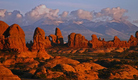 Moab, Utah. Pretty much the entire southern part of the state, it's basically the extremely stereotypical desert you see in every movie involving the wild west, with those big sandstone stacks and **** . This is the picture I find closest to Olympus up there, but it's not what Moab is famous for.