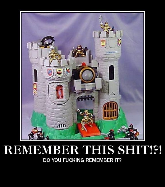 Five Minutes later: Living room opens and what do I see? A wooden ******* castle. Half as high as I was with even higher towers, big enough that me and a friend could ******* LIE DOWN in there at the same time. Completely with a dozen wooden knights with movable arms/legs, horses, a big weapons arsenal, catapult, several FUNCTIONAL Cannons, etc. It even had some parts where I could stack Lego Parts on the wooden parts, so I could built it bigger.