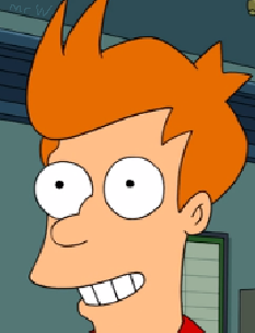 no, the police officer is tall enough that his junk is above the barrier that would block fry's vision of it and the fact that the officer has no pants
