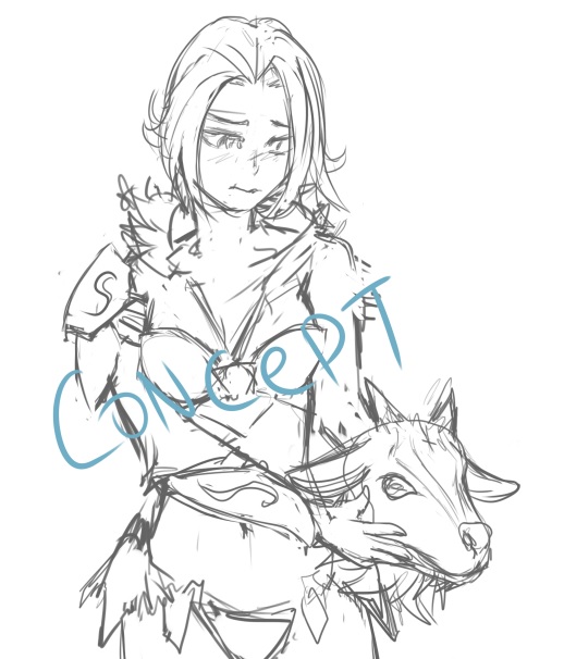 This is the quick doodle, I send this to see if he likes the idea... Because I don't want to make a complex sketch and then be told "Change the hair/eyes/outift"
