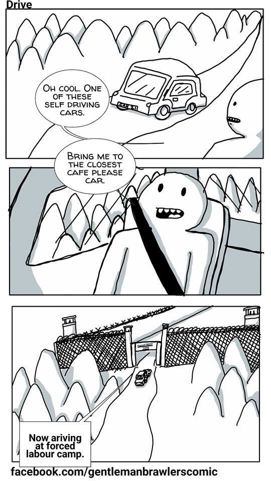 Tags: driving | Cars | self driving | labour camp | forced labour | gentleman | brawlers | comic | oc comic | OC