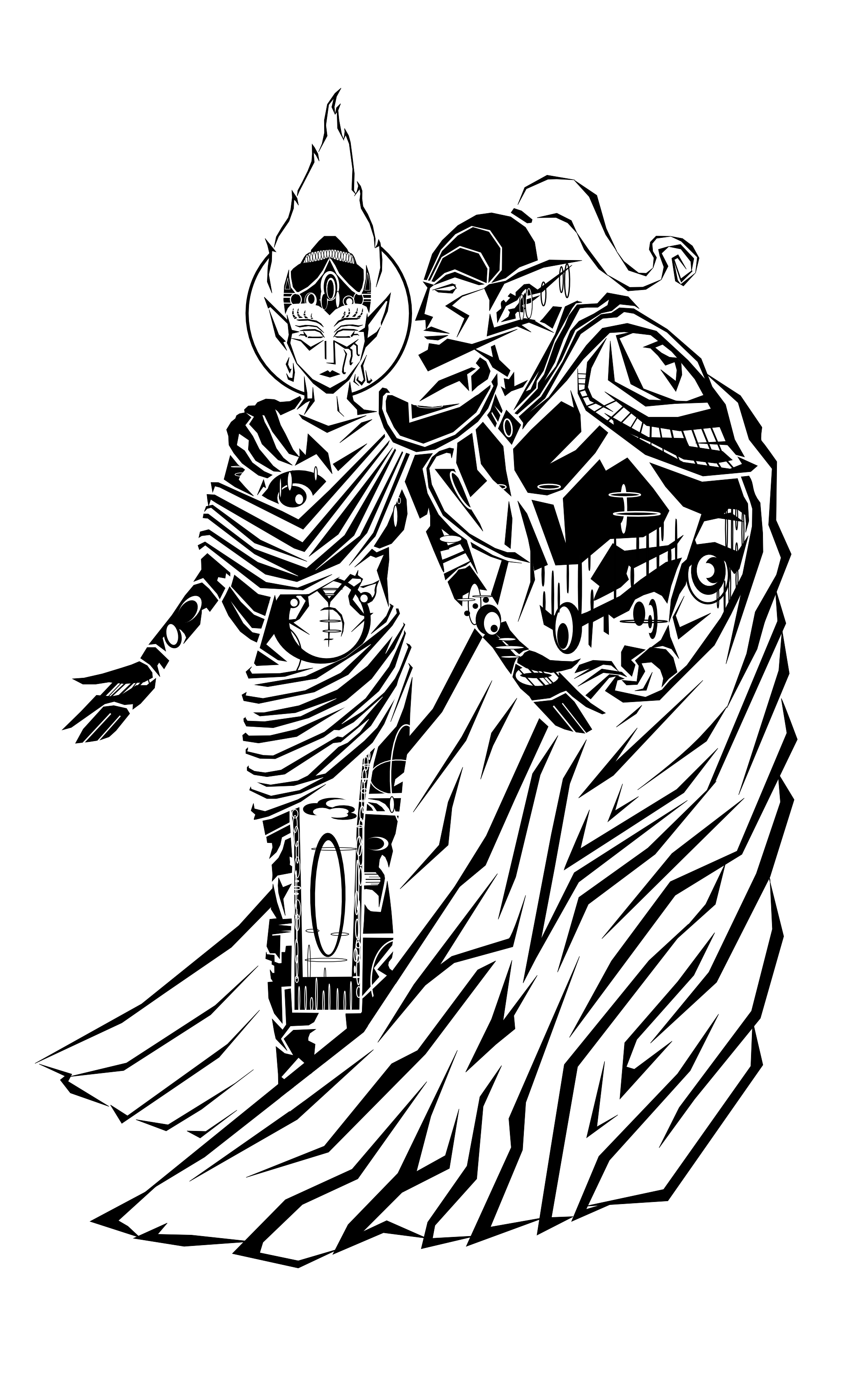 Vivec and Almalexia. Scheming as usual I have no doubt. Look, if there's one thing you shouldn't do, it's trust ALMSIVI. Those guys are about as reliable as the theoretical offspring of Sheogorath and Sanguine.
