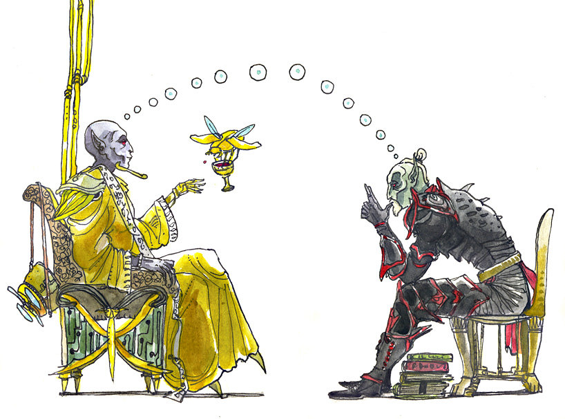 Sotha Sil and Divyath Fyr deep in discussion. Let's not disturb them, it is unwise to interrupt two exceptionally powerful wizards.