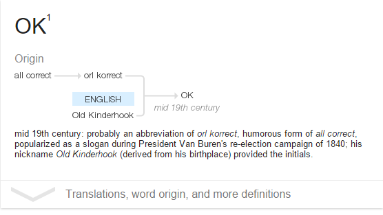 And the origin of the word "ok" is quite a longshot because there seem to have been various cultures using similar arrangements of letters and abbreviations.