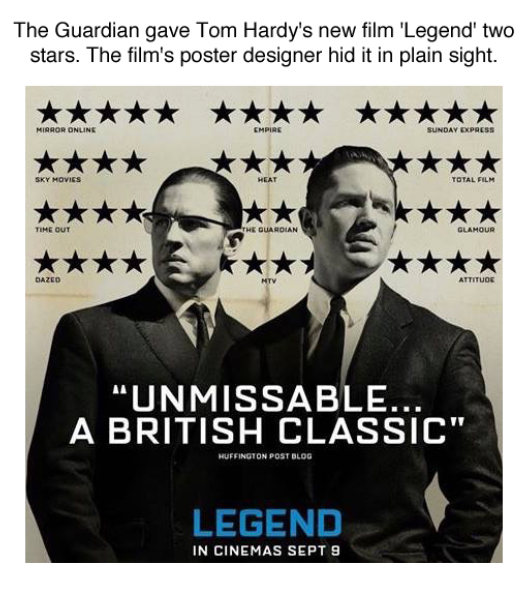 The Guardian gave Tom Hardy' s new film 'Legend' two