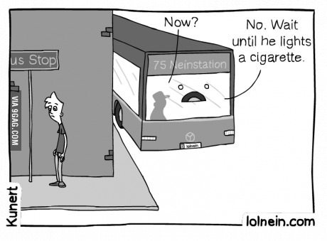 I'm sorry, I know most people go with the idea of it's their business with smoking but I hate people who smoke at bus stops. If you are going to feed your habit, go away from the bus stop. Those places are filled with people including little kids and students. The smoke goes everywhere and everyone is glaring at the smoker.