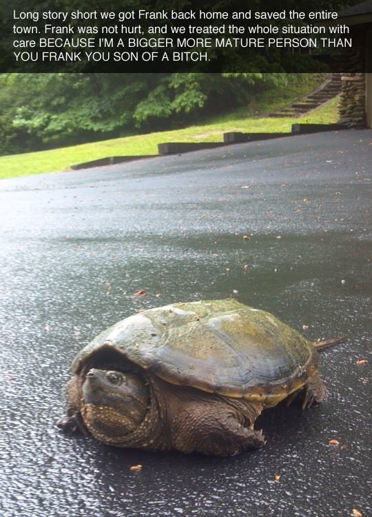 A few years back we rescued a bunch of baby snappers who were being targeted by a bunch of birds. Also, there was iterally no pond anywhere around there.