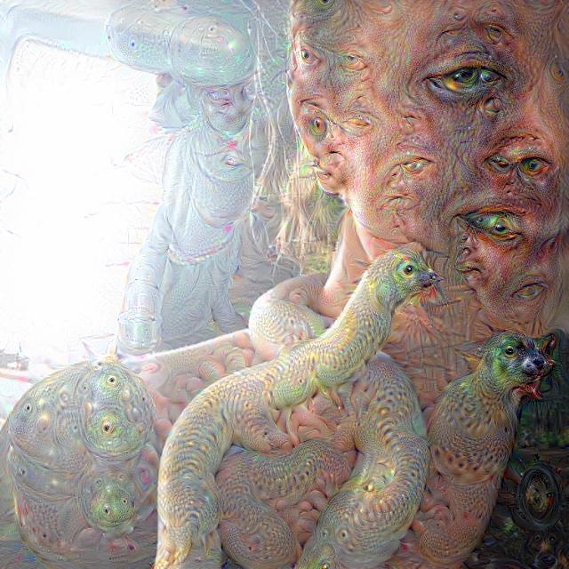 This video, and images like it, were created with a neural network (I think Google made it.) This specific network is used for grouping images. It looks through a set of images and determines which ones have dogs or cats or birds or some other distinguishable feature and groups those images together. Over time the network learns what a dog looks like and when you reverse the process and ask the network to provide an image of a dog, it will give you its understanding of what a dog is. So (as I understand it) it takes images and tries to find features that look like dogs (or something else) and it exaggerates those features. The process can be repeated on the same image for a stronger effect. It can make some pretty horrifying things, but it can make some beautiful stuff as well.