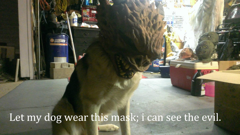 Evil Dog Flag jeremyneverdieone (See more...) next random - Fav Favorite Comment ✖ Top NextComment (Enlarge) Let my german shepard-wolf mix wear a mask to see what he looks like with it on. next Tags: Halloween | masks | Wolf | Scare +36 Views: 3646 Favorited: 0 Submitted: 10/15/2013 Share On Facebook -Favorite +Favorite Unsub from jeremyneverdieone Subscribe to jeremyneverdieone