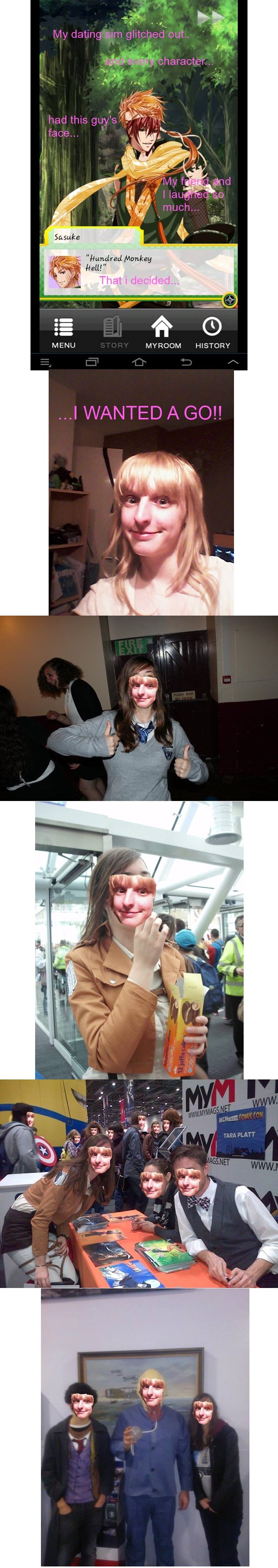 Face Glitch Flag teamonyd (See more...) next random - Fav Favorite Comment ✖ Top NextComment Dating sim : Shall we Date ninja love Face swapping got too mainstream back to old school paint next Tags: glitch | hack | Face | swap | funny | Anime | Ninja | dating sims | dating sim MYRIAM HISTORY ... +7 Views: 1627 Favorited: 0 Submitted: 03/07/2014 Share On Facebook -Favorite +Favorite Unsub from teamonyd Subscribe to teamonyd