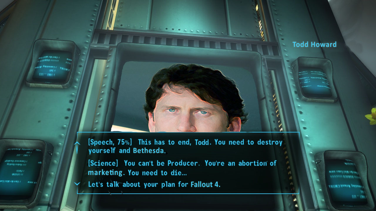 That brings you to a developer testing room which is covered in high res textures. Proving, beyond a doubt, that bethesda ******* MADE THEM ALREADY, and just downsampled all the playable areas for consoles