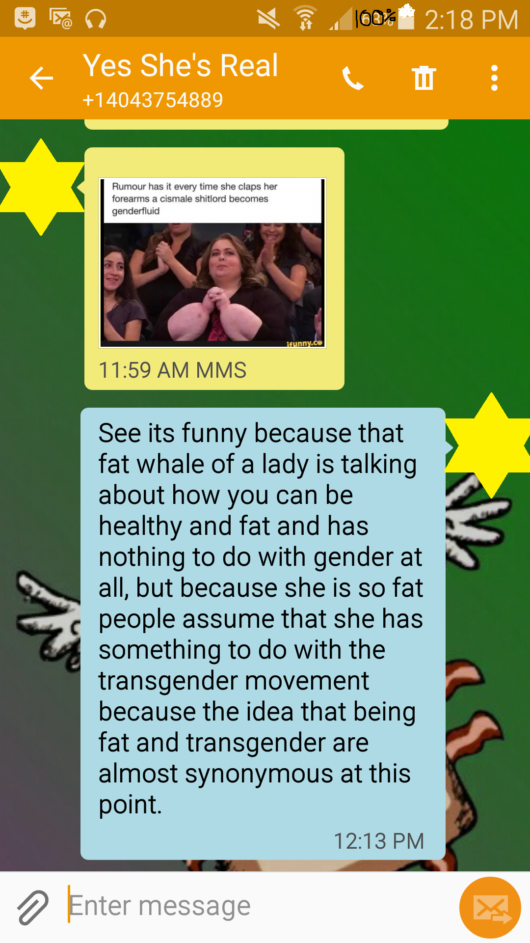 See it's funny because it's this thing called a joke. Also considering that a lot of people who talk about fat acceptance are also big advocates of the transgender movement even though they're both retarded as **** , this isn't a big leap in judgement. Don't get me wrong, being trans is fine, whatever makes you happy. But the faggots who flaunt it like it makes them better than the majority of people and the ones who talk down on "cis" people are sickening. These movements often times say "we were born this way, it's who we are" and it's the same with homosexuality. Well, faggot, I was born a straight while male and that's how I identify, so why are you talking **** ? I was born this way.