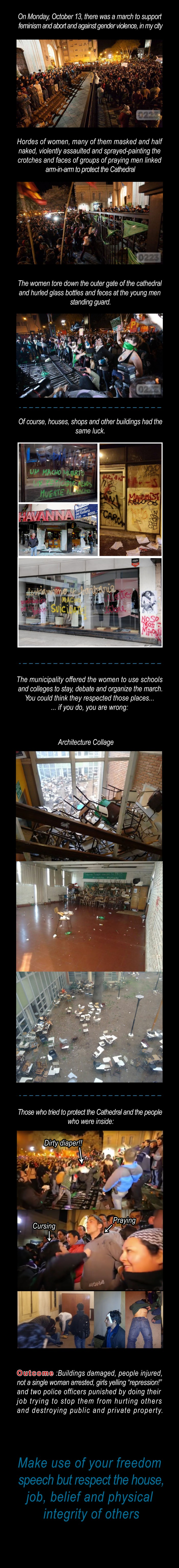 It wasn't in buenos aires, it was in Mar del plata, a city close to Buenos aires (kind of). The march itself wasnt "ni una menos", every year here in argentina there's a woman's reunion and every year they go and trash a different city. Ni una menos, was one of the topics discussed, in a way it's a meeting to debate the problematics of women in aregentinan society, and it's true what they cause to the city it's never told on news. They even tried to make it look as the people from they inside tore the gate. I have some friends that went and they are really convinced that they haven't done anything wrong. Argentina is having some major issues with extreme feminism