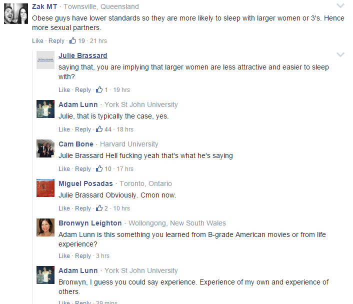 c'), [these guys have lawer standards m they are mere likely sleep with larger women er " Hence