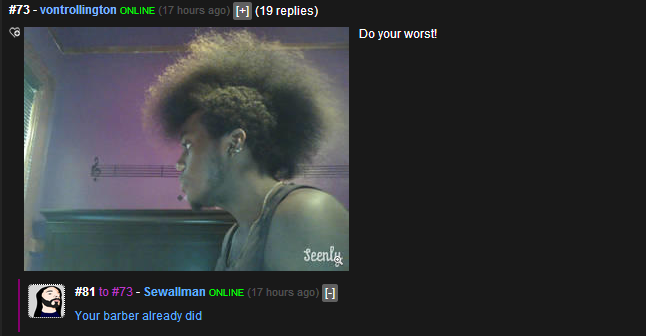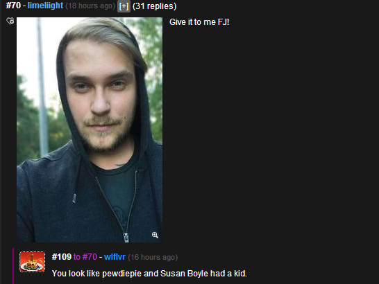 I read through all your responses to these burns and thumbed up almost all of them. Gotta say, you've got a great sense of humor. Haven't actually laughed here in a long time.