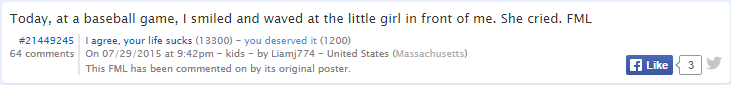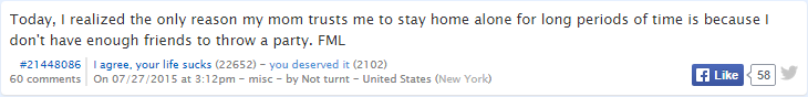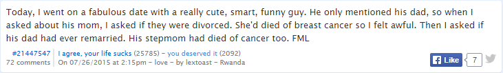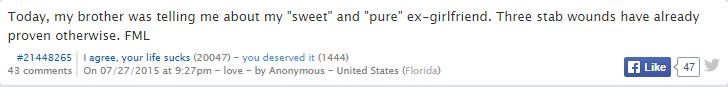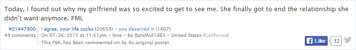 FML Comp #2 Flag bleachtaire (See more...) next random - Fav Favorite Comment ✖ Top NextComment This is my second comp, so I hope you enjoy it. Tell me if there's anyway I can improve the comps. next Tags: FML | fmylife | comp +41 Views: 2737 Favorited: 2 Submitted: 07/31/2015 Share On Facebook -Favorite +Favorite Unsub from bleachtaire Subscribe to bleachtaire