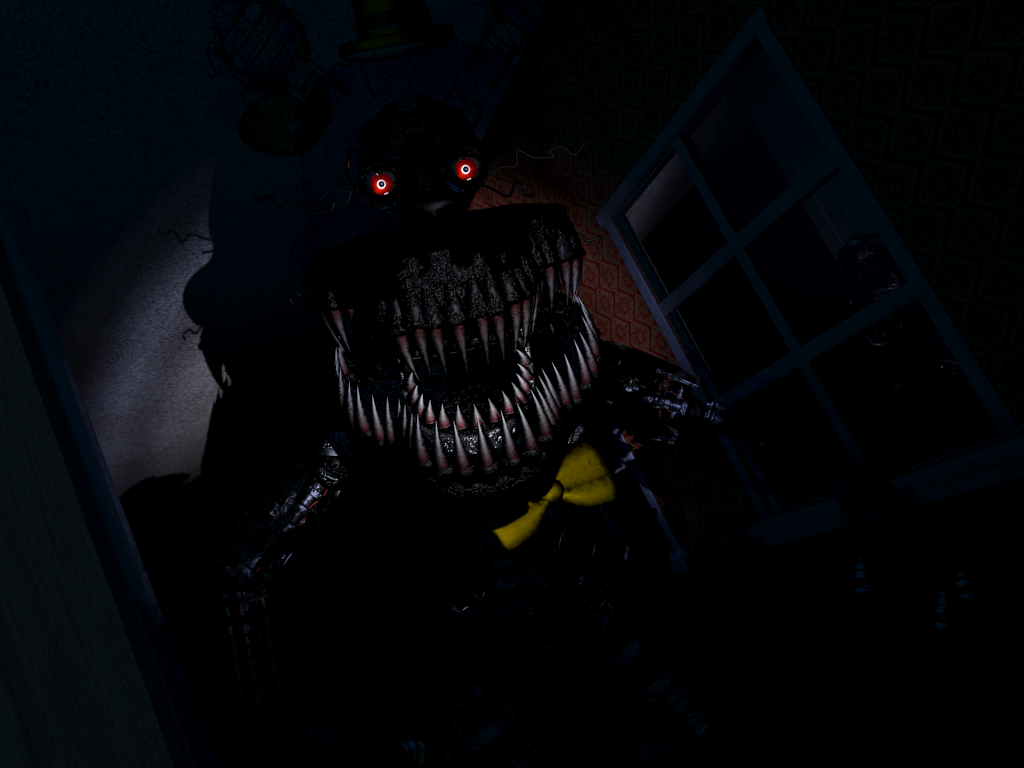 speaking of FNaF 4, nightmare's head is transparent...for some reason. More spook factor perhaps?