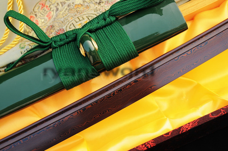 its just regular damascus from what ive seen but they use some special colored clay to temper it i think im not sure but its definatley a display piece only
