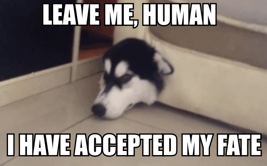 I love it when dogs look ashamed and sorry for what they've done, and then suddenly try to act natural like nothing's wrong to break the tension, there should be a name for that.