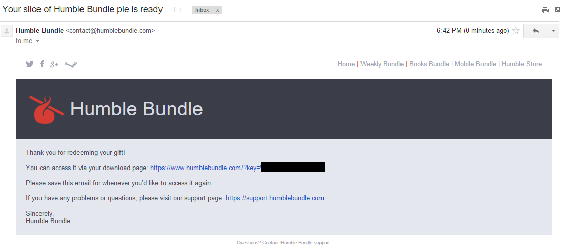 EDIT: I'll be sending the keys out this evening, so that plenty of people have time to enter.