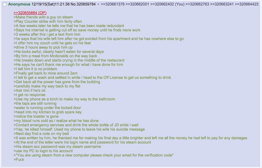 I was expecting he finding something which makes him rich in the steam acc, like the pepsi guy was suicidal because of emotional marriage problems, not money...... Disappoint.