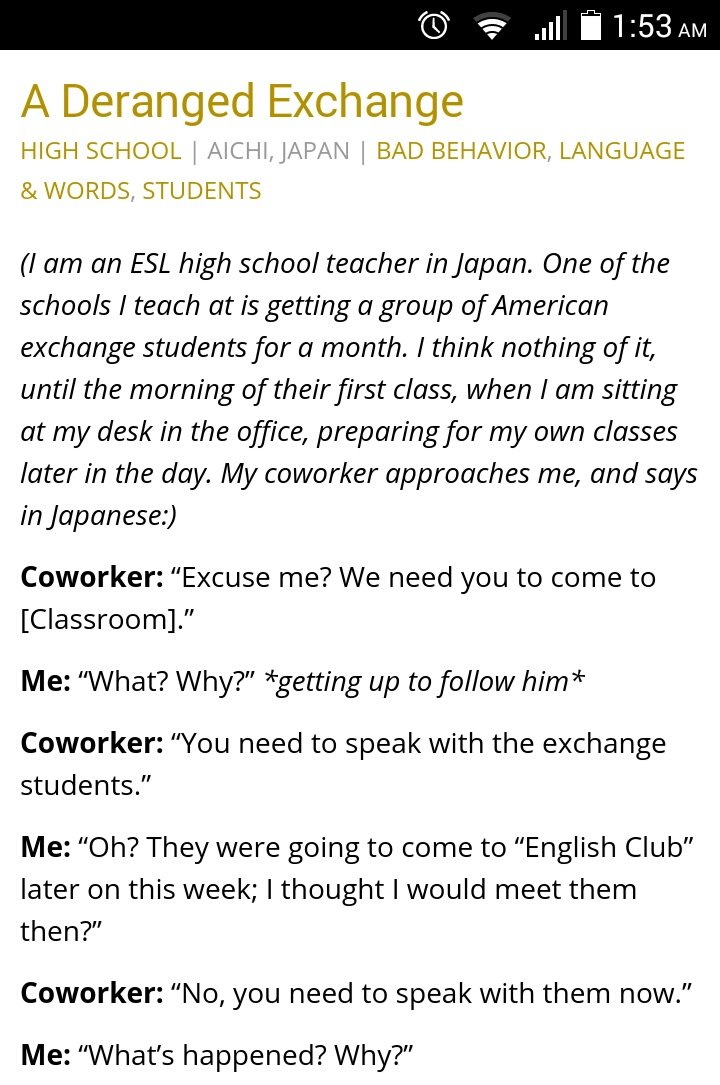 exchange students for a month. i think nothing of it,