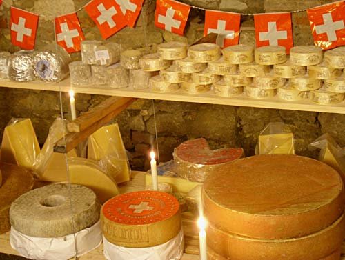 we really love cheese. Not a Swiss cheese have holes in them. Several of our national dishes consist mainly of cheese. For example Fondue is a tub of molten cheese, that you eat by dipping bread in.