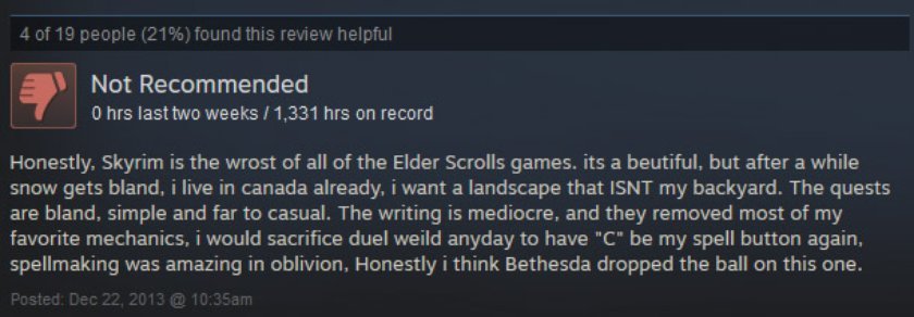 Think of that but with Skyrim. Where the guy literally only did one thing then bashed it constantly. It can lower someone's patience with that.