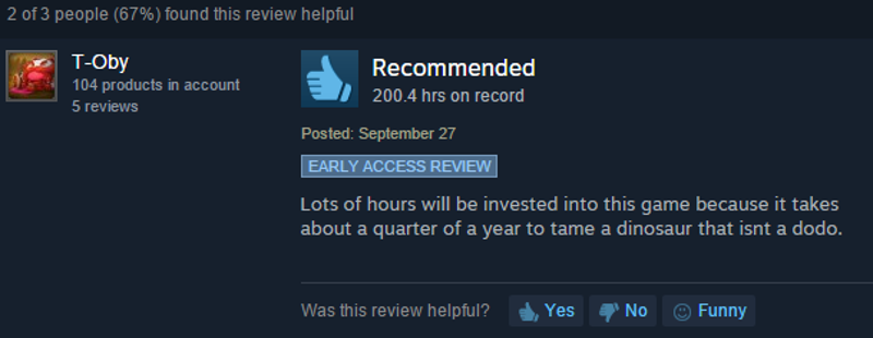 I run the game at 60fps on a GTX 980 on a mix between high and ultra settings. I have lots of friends with low-end PCs that can play the game fine, albeit not on very high graphics, you must have played the game a long time ago before they optimized it. And yeah maybe you do only collect berries and tame dinos the first 3 hours of the game, but as soon as you exit the early game, there's so much content in the game. Also playing on a server with 3x tame rate and 3x harvesting rate is the way to go. Makes it much more balanced and almost every server runs those options.