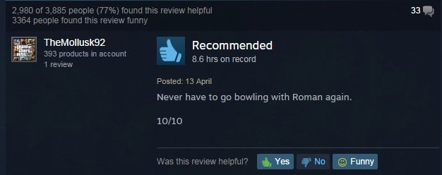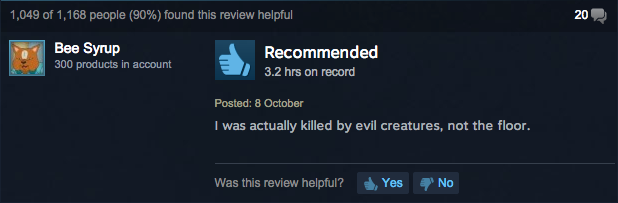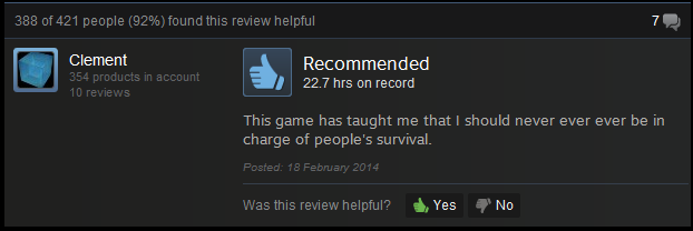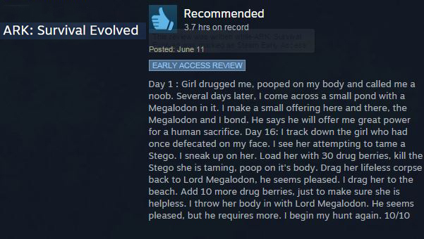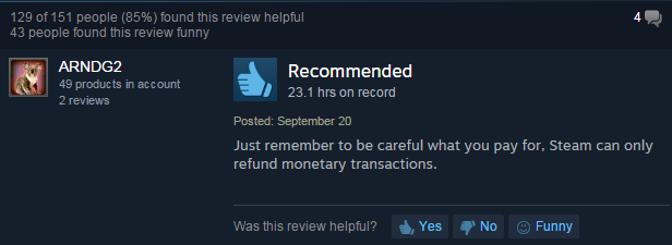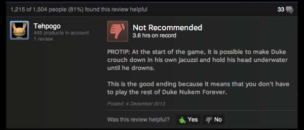 These comps are pretty funny, but they've pretty much ruined Steam reviews. 98% of all the reviews on there nowadays are dumbasses trying to be funny and failing miserably all for the sake of the outside chance of landing on a funny webpage somewhere.