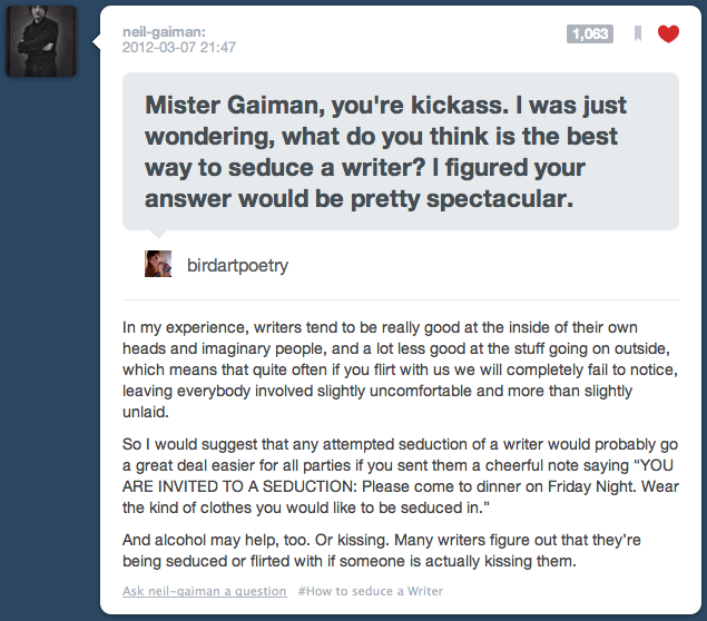 And alcohol may help, too. Or kissing. Many writers figure out that they' re
