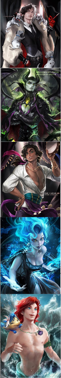 ...while I understand that the myth had Hades able to change gender (And form and whatever because greek gods were OP as hell), this is a comp of Disney Villains gender bent. Of which, he was displayed and referred to as a male. Zeus call him brother, pronouns 'he, his, him' were used...