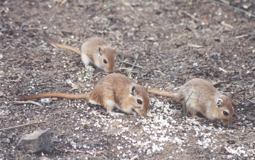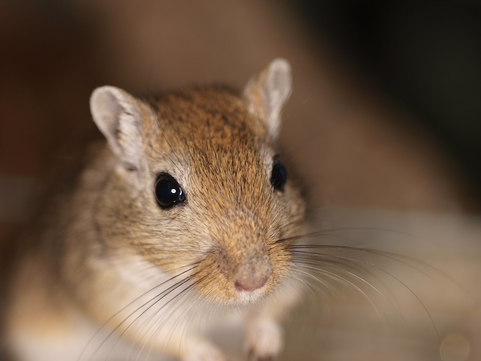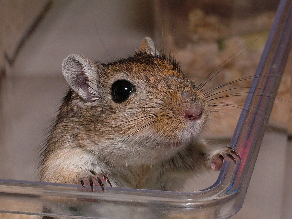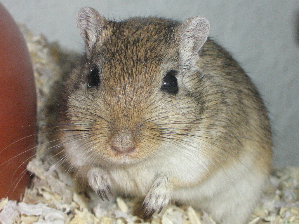 Gerbils are about the same size as a small hamster. They weigh between 2 to 4 ounces and are about 4 1/2 inches long. The tail is as long as a gerbil’s body and is covered with fur. The hind legs are very muscular and they have large feet. Gerbils often stand on their haunches when not moving instead of crouching down. They often have a golden coat with white underbelly but gerbils can be a variety of different colors. A gerbil will usually live 3 to 3 1/2 years.