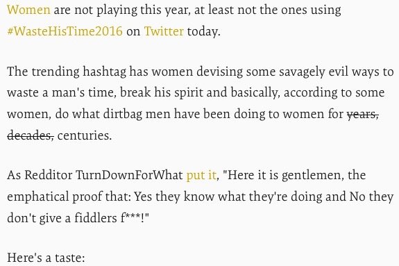 While the hashtag is childish and plain stupid, to be fair it was a response to some other asshole making a wastehertime hashtag, so it technically is fair.