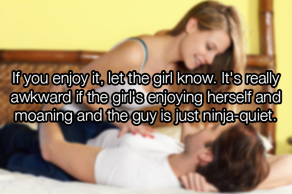 Now, for the ladies wanting their guy to moan, the bottom line is that most guys really don't moan. Women are more likely to. When you moan, it just happens because of the feelings of pleasure. It's mostly involuntary. I'm transgender and I never moaned as a guy, but as a girl, things feel much more intense, and I usually can't control it. Pleasure is felt differently and your body intuitively responds to it in other ways. My lovers hands running across my belly or along my thighs can set me on fire and have me screaming whether I want to or not. But it's also easier to just let go and blot out all my thoughts. As a guy, you're still more tuned in to what's going on around you. Sex is also more of a full body ordeal for women, which isn't really the case for men. So be understanding a bit for why your hubby/boyfriend is dead silent in bed.