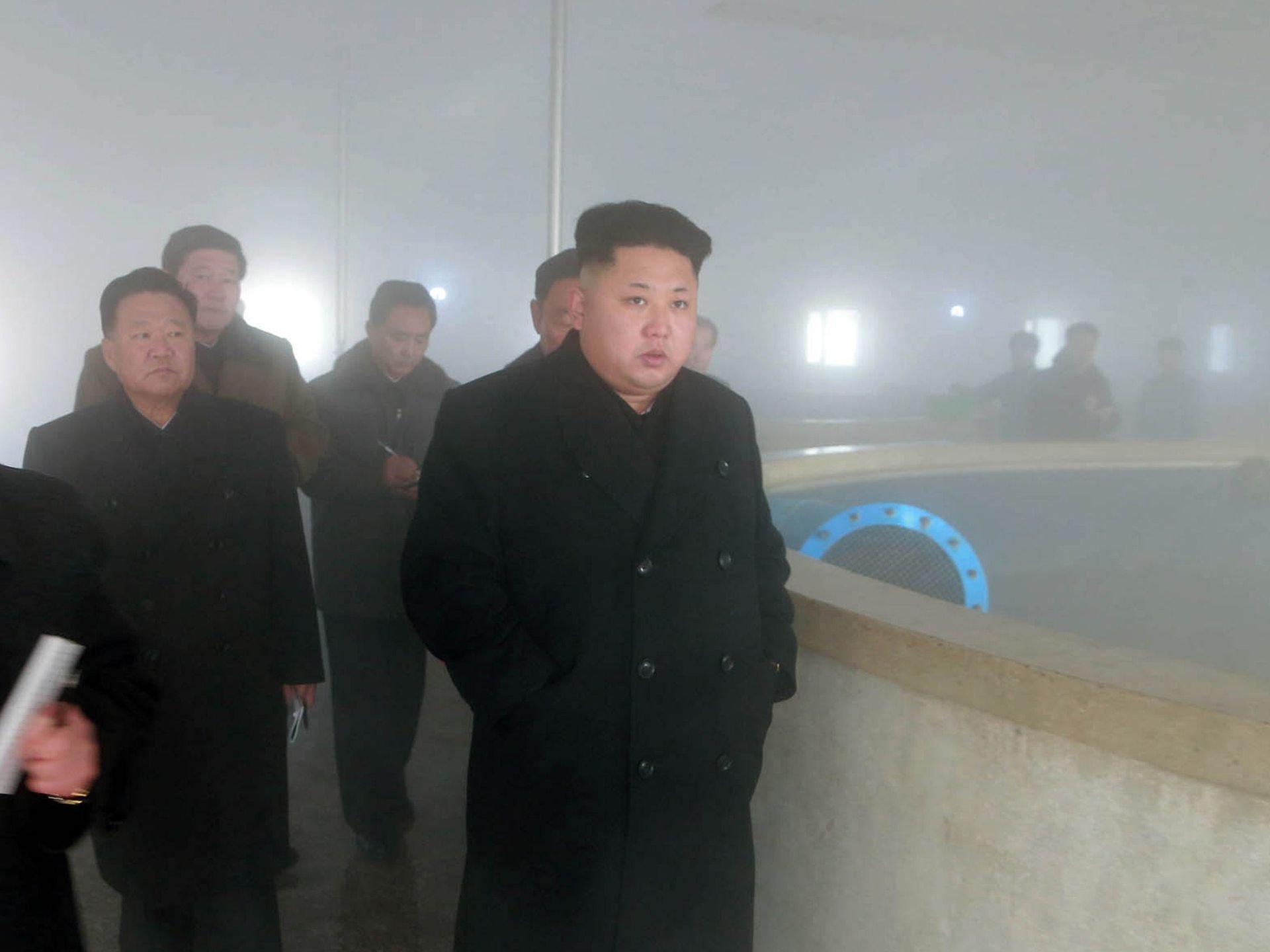 Admin inspects a Pyongyang catfish farm in this picture released Dec. 23