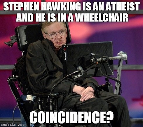 He was born with a disease which should have killed him years ago, but while many Christians born with this disease died for the glory of god's plan, he has sought medical attention, a primarily atheist science, to extend his atheist life and perform another kind of atheist science and he's still here and going strong.