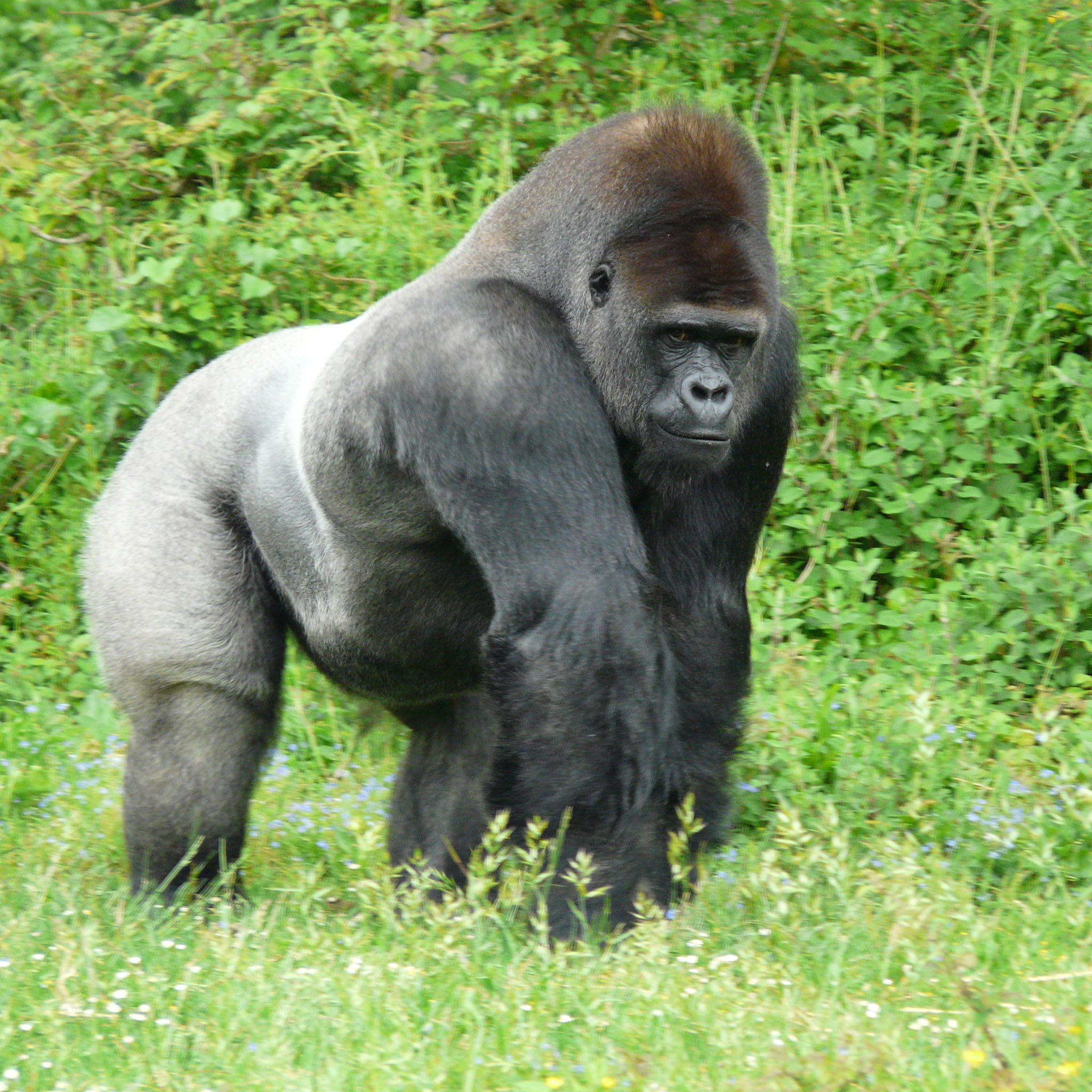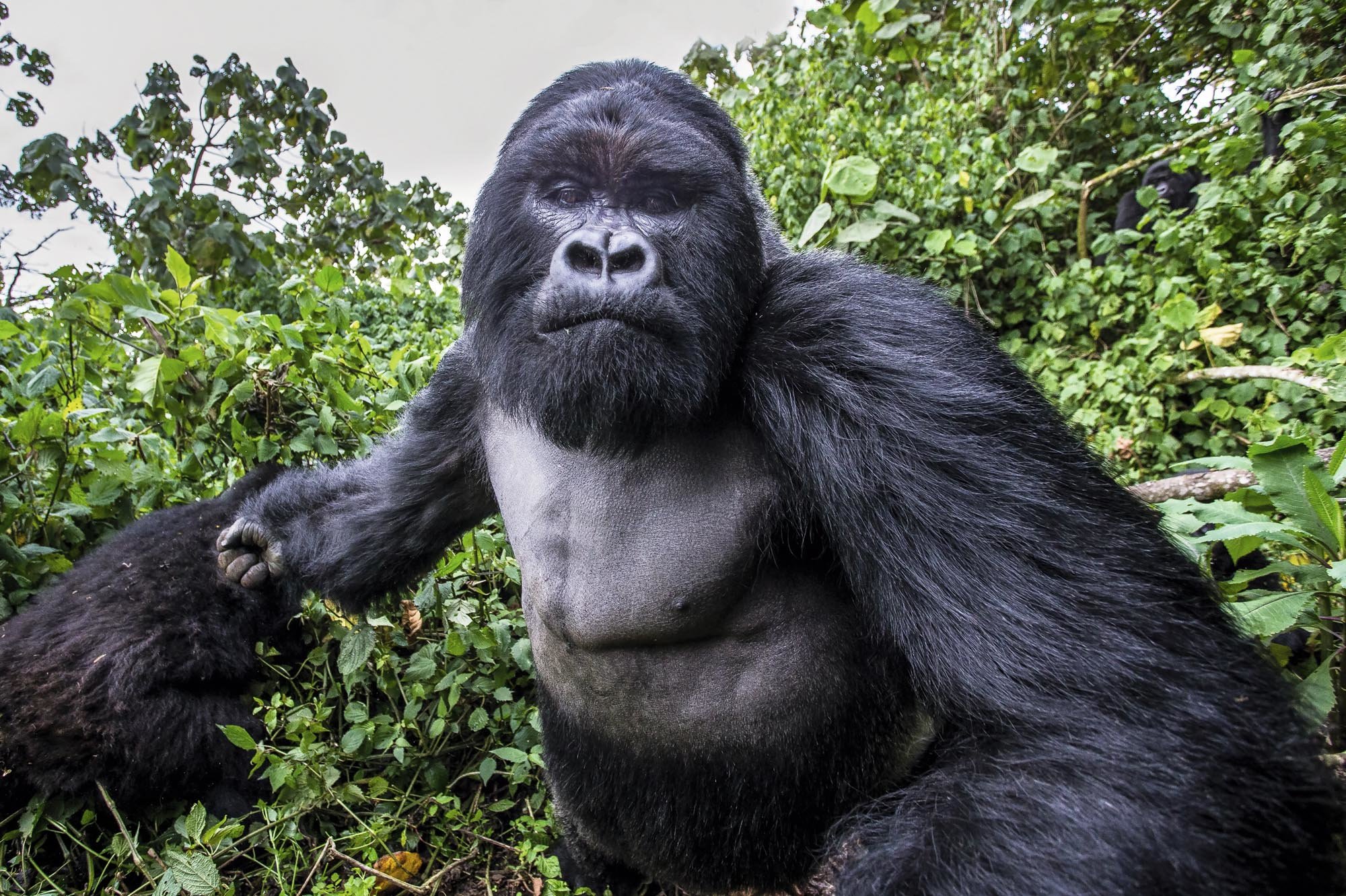 Gorillas are ground-dwelling and live in groups of 6-12 with the oldest and largest silverback leading a family of females, their young and younger males called blackbacks. The silverback makes the decisions on when his group wakes up, eats, moves and rests for the night. Because he must protect his family at all times, the silverback tends to be the most aggressive. In such situations, he will beat his chest and charge at the perceived threat.