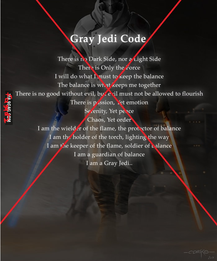But some Jedi who have claimed to be gray, have made statements that could be viewed as a tenet of a gray code, if it were to exist. They preach balance as a core principle of the gray jedi 'way':