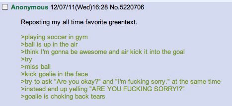 GreenText Comp Flag dobroxninja (See more...) next random - Fav Favorite Comment ✖ Top NextComment Here is content addy, greentexts that I have collected in my adventures on the interwebz (Enlarge) (Enlarge) (Enlarge) (Enlarge) (Enlarge) (Enlarge) (Enlarge) (Enlarge) (Enlarge) (Enlarge) (Enlarge) (Enlarge) next Tags: greentext | 4 chan | comp +3 Views: 798 Favorited: 1 Submitted: 08/15/2015 Share On Facebook -Favorite +Favorite Unsub from dobroxninja Subscribe to dobroxninja