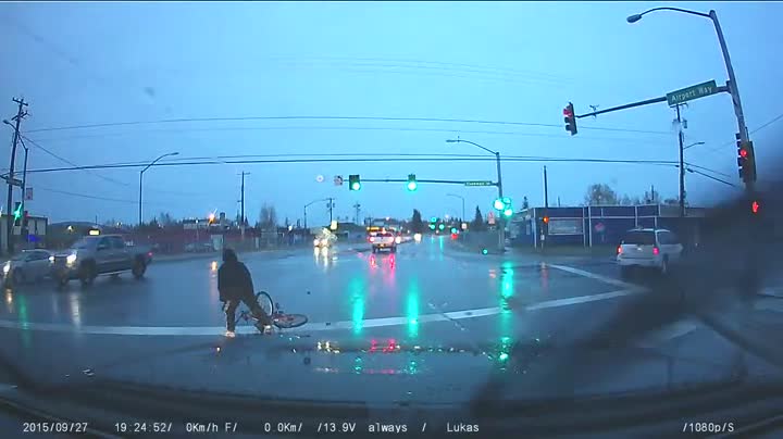 In reality, tho, i'm like 95% sure that bike was stolen. Seriously, look how that idiot just bikes in the middle of the road while he clearly isn't allowed to pass, and how nonchalantly he walks away, despite "his" bike just having been destroyed. Bikes easily go for like $200 for a new one, so no sane man would just leave it like that. Also it's an incredible inconvenience for drivers, which also points further to that.
